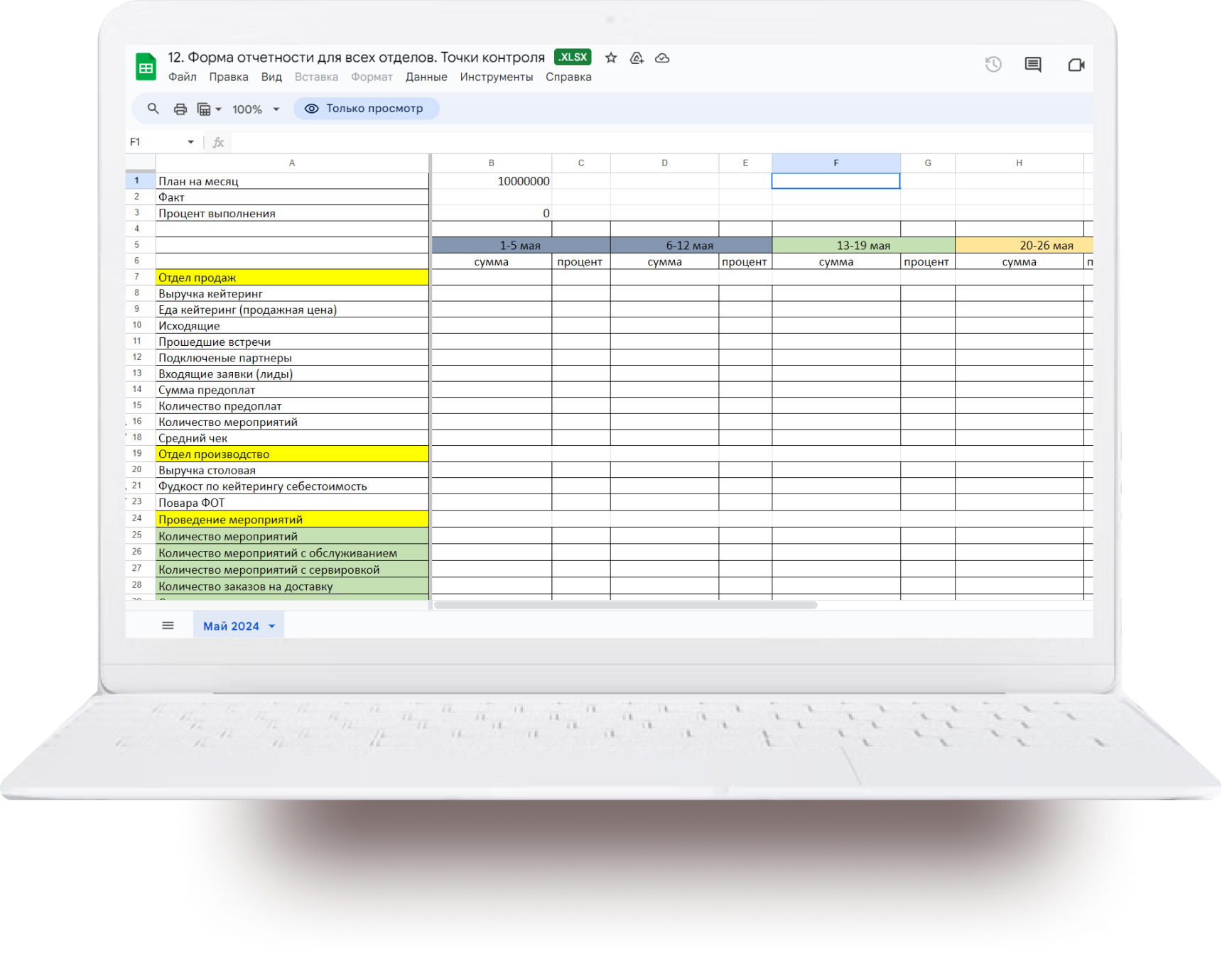 Форма отчетности для всех отделов. Точки контроля